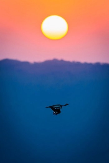 Chú chim và khung cảnh hoàng hôn tuyệt đẹp. Ảnh chụp tại Nam Phi.