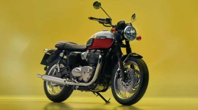 Chiếc Bonneville T120 1.200cc lớn hơn tiếp tục với chủ đề hai tông màu ở bình xăng là trắng Crystal White và đỏ Cranberry Red, tương phản với ốp hông, vỏ đèn pha và chắn bùn màu Jet Black. Các tùy chọn màu Đen Jet Black và Trắng Fusion White cũng sẽ có cho năm 2025.