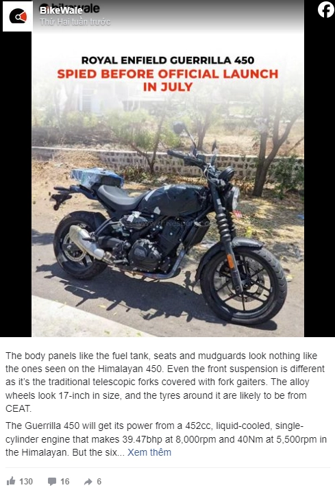 Tuy nhiên, có thông tin cho rằng Royal Enfield Guerilla 450 sẽ được ra mắt tại Ấn Độ trong tháng 7 sắp tới này. Và nó có thể là một sản phẩm được tiếp thị trên toàn thế giới.