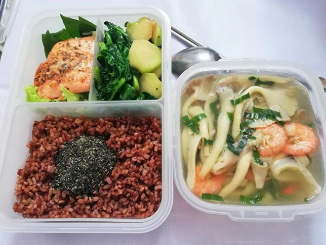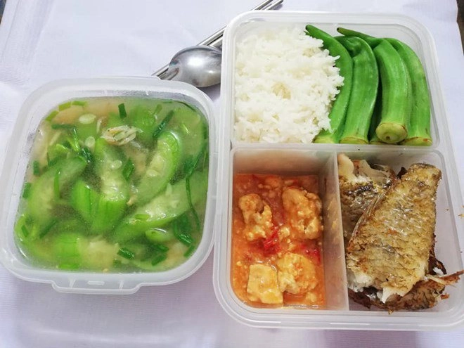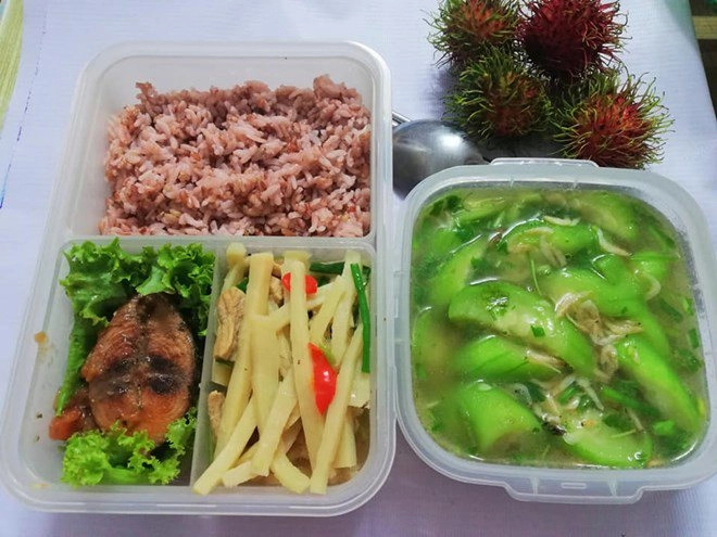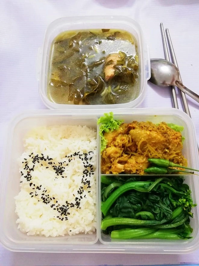 Chẳng hạn, "xương để nấu canh thì mình sẽ hầm sẵn. Canh khổ qua dồn thịt hay thịt kho tàu thì mình nấu sẵn từ tối do những món này nấu lâu. Sáng nấu không kịp. Thịt để nướng thì mình ướp sẵn từ tối...", chị nói. Nhờ vậy mà trước giờ đi làm, chồng chị đều có được những hộp cơm đủ món để mang đi.