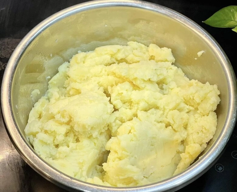 Sau khi khoai tây chín, đem bóc vỏ rồi dùng muôi dầm nhuyễn hoặc cho vào cối giã nhuyễn.