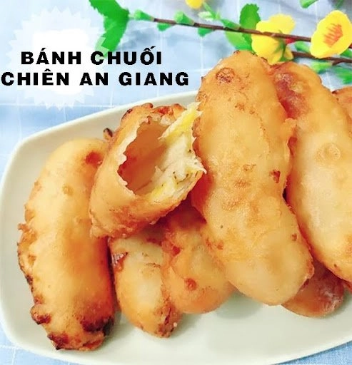 + Thành phẩm: Bánh chuối chiên An Giang có hương vị thơm ngon mới lạ, vỏ ngoài vàng giòn rụm, bên trong khi ăn xốp mềm. Sự hòa trộn giữa vị béo ngậy của nước cốt dừa, vị thơm của bột bắp và trứng gà khiến món bánh chuối thêm hấp dẫn.