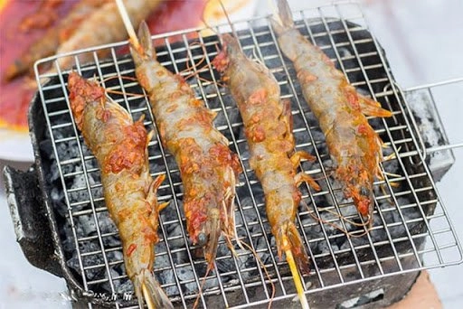 - Dùng bếp nướng than hoa: Khi than lửa hồng đỏ, xếp tôm vào vỉ nướng rồi cho lên bếp. Trong quá trình nướng đảo đều tay để tôm chín đều không bị cháy. Nướng trong khoảng 10-15 phút khi thịt tôm chín đều, có màu đỏ gạch dậy mùi thơm là hoàn thành.