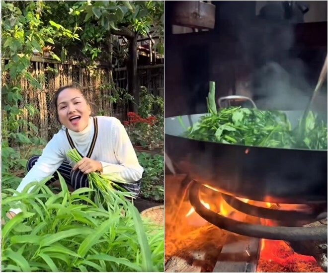 Người đẹp Tây Nguyên H’Hen Niê cũng vậy. Cô từng chia sẻ khoảnh khắc tự tay hái rau muống trong vườn để chế biến món rau muống xào tỏi giản dị mà hấp dẫn.