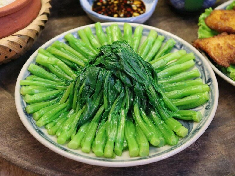 Đun sôi nồi nước, thêm chút muối, cho ngồng cải đã nhặt rửa sạch vào luộc chín, vớt ra đĩa.