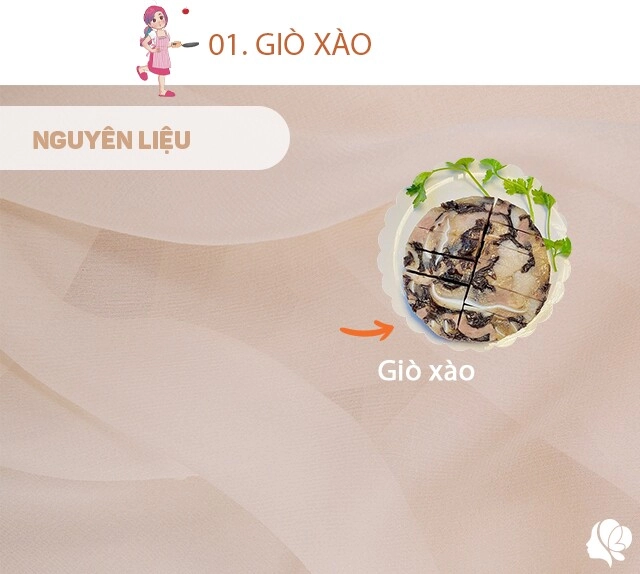 Giò xào mua sẵn đem cắt miếng vừa ăn rồi bày ra đĩa.