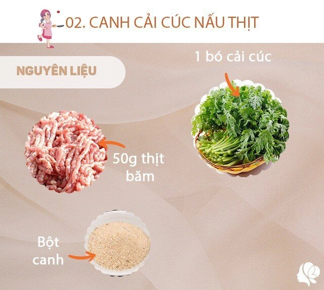 Chuẩn bị: 1 bó cải cúc, 50g thịt băm, bột canh vừa đủ.