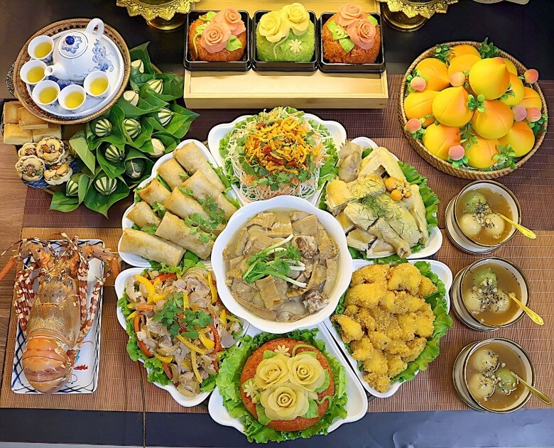 Mâm cỗ cho các ngày lễ của chị Hương vô cùng đủ đầy, chỉn chu, đẹp mắt.