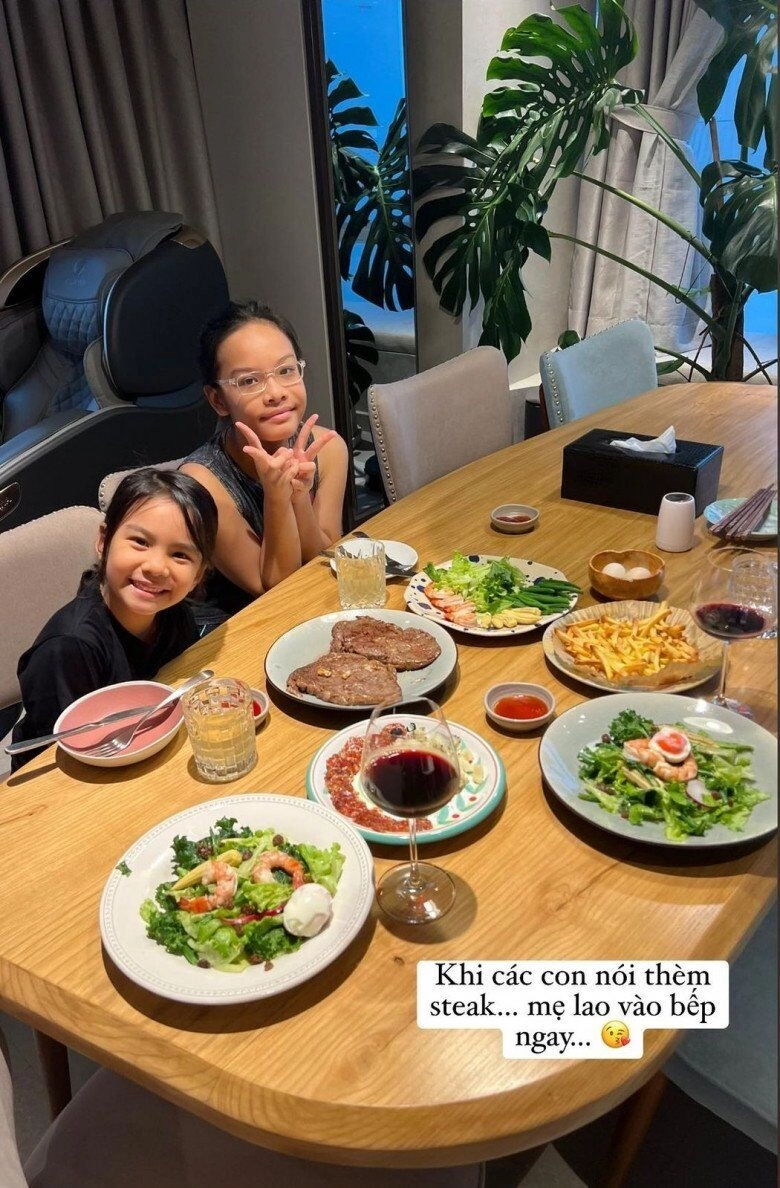 Dù bận rộn với lịch trình công việc và chăm sóc 3 cô con gái, Phạm Quỳnh Anh vẫn sắp xếp thời gian vào bếp. Món bít tết của cô tuy đơn giản nhưng đủ sức “hạ gục” các con nhờ cách chế biến vừa miệng, không quá cầu kỳ mà vẫn giữ trọn hương vị nguyên bản của thịt bò.