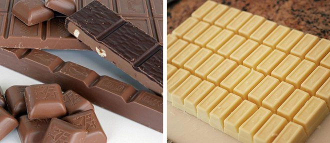 Sô cô la trắng được làm bằng bơ ca cao, chất rắn sữa và đường.