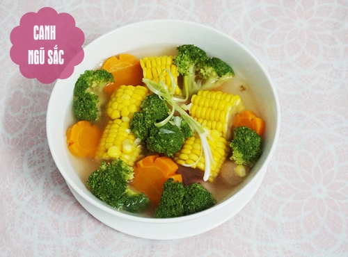 Ngô lột bỏ, bỏ hết râu rồi cắt khúc, cà rốt, khoai tây, su su gọt vỏ cắt miếng vừa ăn. Súp lơ xanh bổ miếng, tất cả rửa sach để ráo nước Cho 1l nước vào luộc ngô trước. Phi hành tỏi đổ su su, cà rốt, khoai tây vào xào, chín tái thì múc ra bát để sang 1 bên. Ngô chín ta đổ rau vừa xào vào đun sôi, cho súp lơ xanh vào sau cùng, nêm nếm gia vị vừa ăn. Canh chín thì múc ra tô, rắc hành ngò lên và thưởng thức.