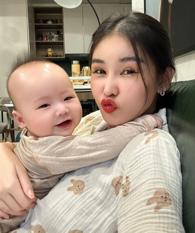 Con trai Lê Âu Ngân Anh mới 9 tháng tuổi đã theo bố mẹ đi làm từ thiện, ủng hộ đồng bào lũ lụt miền Bắc.