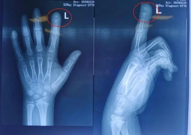 Khi cô Li đưa con trai đến bệnh viện lần nữa, phim chụp X-quang cho thấy tình trạng nhiễm trùng đã ảnh hưởng đến đốt ngón tay - có một vùng xương bị phá hủy lớn. Cô Li lo lắng nên nhanh chóng đưa con đến Khoa Chỉnh hình của Bệnh viện Nhi Hồ Nam để tiếp tục điều trị.
