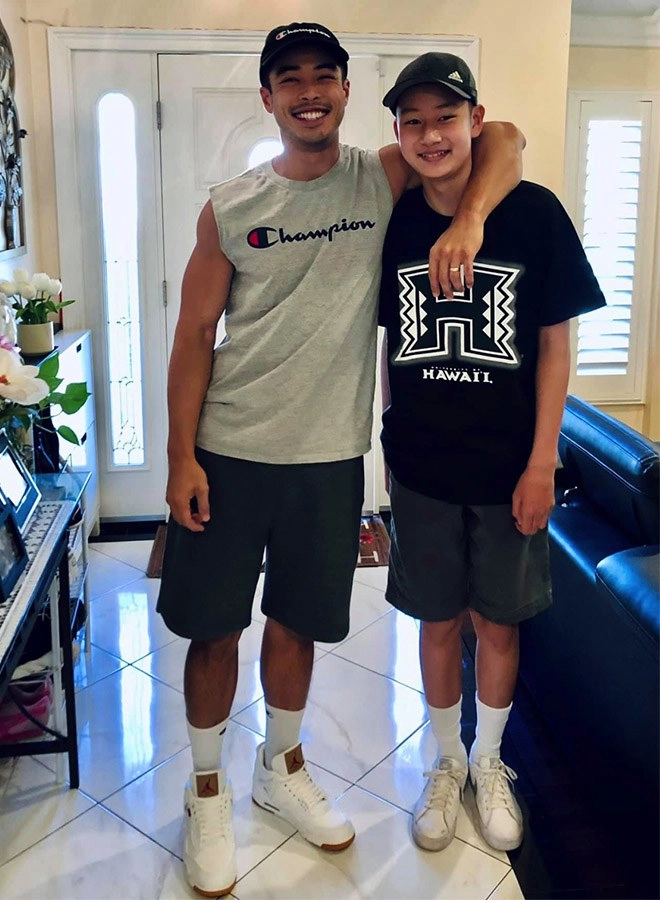 Trong trường hợp bố mẹ đều cao ráo, con cái có khả năng thừa đặc điểm này lớn hơn. Đây có lẽ cũng là lý do con trai Quang Dũng và Jennifer Phạm - Bảo Nam sớm phát triển vóc dáng vượt trội ở tuổi 14. Trong nhiều khung hình, con ra dáng thanh niên, chân dài, dáng người khoẻ mạnh, vô cùng "hút" mắt. Cả Quang Dũng và Jennifer Phạm đều sở hữu chiều cao lý tưởng lần lượt là 1m72 và 1m75.