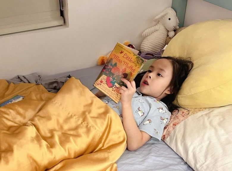 Mới đây trên trang cá nhân, Lan Phương chia sẻ: "Mẹ đọc sách cùng Lina từ khi con còn bé tí như Mia. Đến bây giờ Lina không còn cần mẹ đọc sách cho nghe nữa, mà toàn bảo mẹ nằm để mẹ đọc sách của mẹ, con đọc sách của con thôi. Cứ giờ đi ngủ là trên giường bao nhiêu là sách. Chỉ thỉnh thoảng muốn làm em bé thì Lina mới bảo mẹ đọc sách cho nghe. Mia cũng bắt đầu rồi, nhìn sách chăm chú đến nỗi nước bọt trào hết cả ra miệng, mắt thì sáng trưng háo hức".