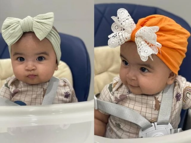Trong ảnh, Moon diện cả bộ bikini màu hồng in hình mèo ngộ nghĩnh, có kèm cả nón tai mèo tông xuyệt tông vô cùng đáng yêu. Trang phục "kiệm vải" phần nào giúp Moon "khoe" được nước da bánh mật đều màu, bụng bự, tay chân ngấn thịt chắc nịch. Được biết, bé Moon được nuôi lớn hoàn toàn bằng sữa mẹ và ăn chay từ trong thai kỳ. Dưới sự giúp đỡ của chuyên gia dinh dưỡng, mẹ con Võ Hạ Trâm ăn chay nhưng không sợ thiếu chất. Trái lại Moon còn có phần bụ bẫm và cứng cáp hơn bạn bè cùng trang lứa.