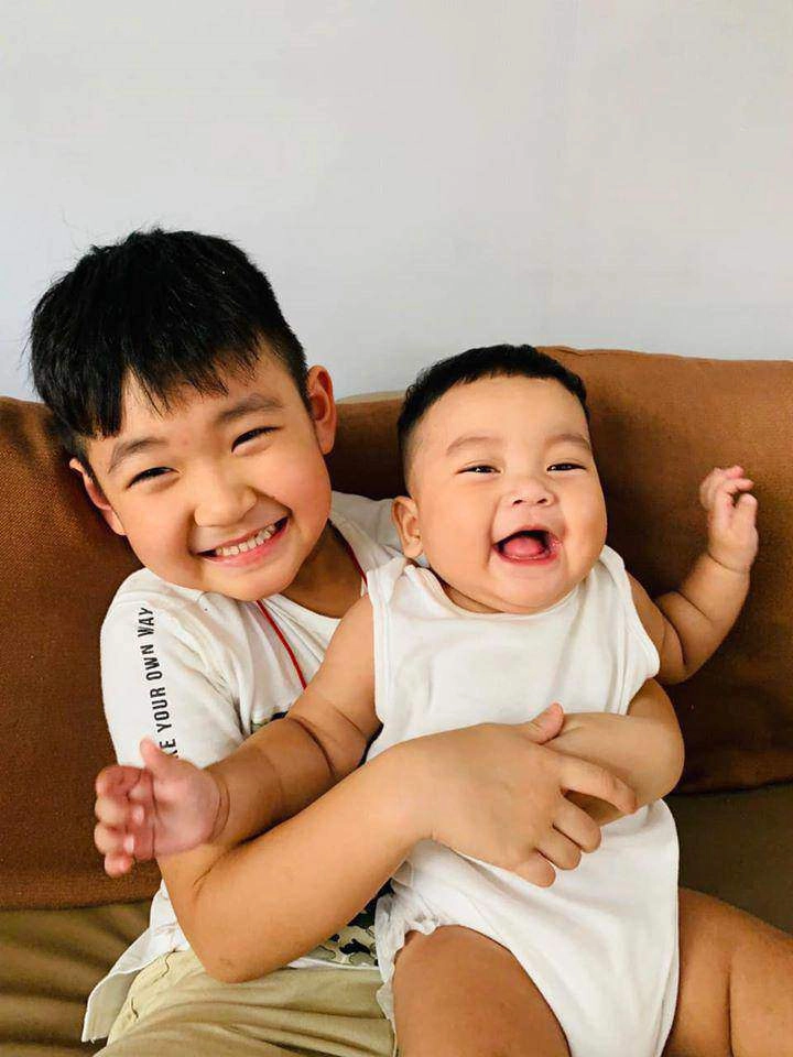 Con riêng Thành Đạt chăm các em cùng cha khác mẹ rất khéo.