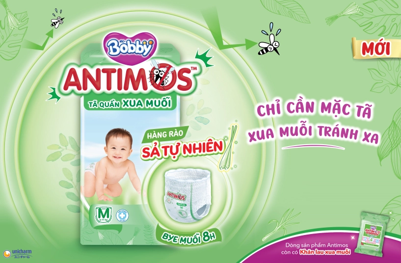 Hiểu được những trăn trở và lo lắng của mẹ trong việc tìm kiếm một sản phẩm xua muỗi phù hợp và an toàn cho trẻ nhỏ, Diana Unicharm (công ty thành viên thuộc tập đoàn Unicharm Nhật Bản) đã giới thiệu dòng sản phẩm Tã quần xua muỗi Bobby Antimos. Đây được xem là “siêu phẩm” tã quần thế hệ mới sở hữu khả năng xua muỗi ấn tượng tới 8 giờ, cùng thành phần tự nhiên và cách sử dụng rất an toàn cho bé nhỏ, hứa hẹn sẽ mang đến cho mẹ một giải pháp lý tưởng giúp bảo vệ các thiên thần nhỏ.
