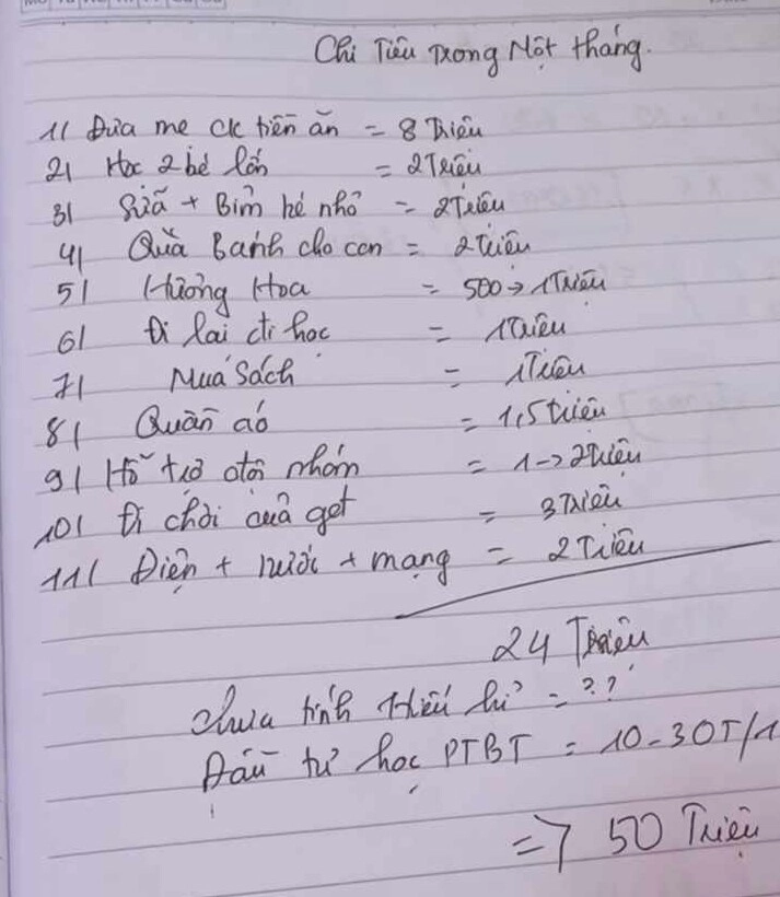 Một khoản chi tiêu trong danh sách mẹ Việt liệt kê gây khó hiểu, được nhiều người cho là vô lý, không thoả đáng nhưng lại chiếm mất 50% mức chi mỗi tháng.
