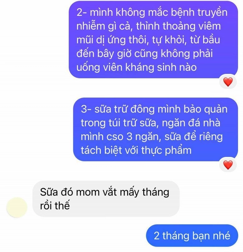 Mẹ bỉm cho sữa cũng rất có tâm khi vui vẻ hợp tác với những câu hỏi mà mẹ bỉm muốn xin sữa đưa ra. Thế nhưng, sau khi nắm được thông tin sữa đã được vắt 2 tháng trước đó thì bà mẹ xin sữa tỏ thái độ không mấy hài lòng, bày tỏ mong muốn được xin sữa mới vắt. Thậm chí còn quá đáng hơn khi bà mẹ này nói "mom cho mình sữa mới đi, bé nhà mom dùng sữa kia (sữa cũ)".