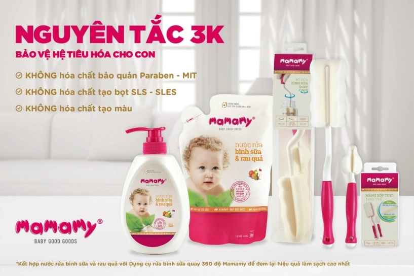 Nước rửa bình và rau quả Mamamy giúp mẹ bảo vệ hệ tiêu hoá non nớt của bé