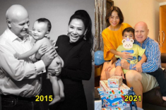 Nữ ca sĩ Thu Minh làm mẹ khi đã ở tuổi 38. Cô hạ sinh con trai Gấu con với doanh nhân Otto (đã ngoài tuổi 50) năm 2015. Cậu nhóc nặng 4,1kg sở hữu vẻ đẹp lai giữa hai dòng máu Việt - Hà Lan, kháu khỉnh và đáng yêu. Thế nhưng trong suốt gần 7 năm qua, nữ ca sĩ Đường Cong chưa chính thức khoe mặt con trai, chỉ 1 lần hiếm hoi là bức ảnh đã cũ. Nói về lý do giấu mặt Gấu, Thu Minh nghẹn ngào: "Ai cũng muốn khoe con mình với bạn bè hay chia sẻ lên trang cá nhân, nhưng bé sinh ra đã là con của người nổi tiếng nên tôi không muốn bé chịu sự tác động nhiều từ bên ngoài. Tôi muốn bé được bình yên, sống cuộc sống như bao em bé bình thường khác".