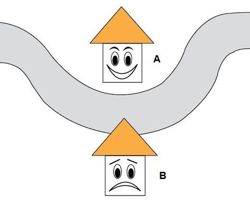 Ngay khi dùng Google, bạn sẽ phát hiện con đường được xây dựng nhọn như 1 mũi dao cắt ngang cây cầu. Các dòng chảy liên tục mang năng lượng xấu sẽ khiến gia chủ luôn cảm thấy bồn chồn và lo lắng. Đây không phải là một ngôi nhà tốt để sinh sống, thậm chí gia đình có thể gặp phải những tai ương không lường trước được.