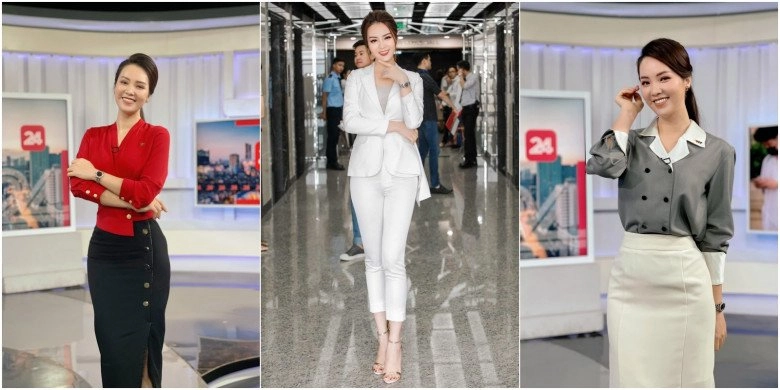 Trang phục của Á hậu 8X mỗi khi lên sóng luôn đảm bảo yếu tố tinh tế và sang trọng nhưng vẫn đảm bảo độ tươi trẻ để ghi điểm hoàn hảo về phần nhìn.