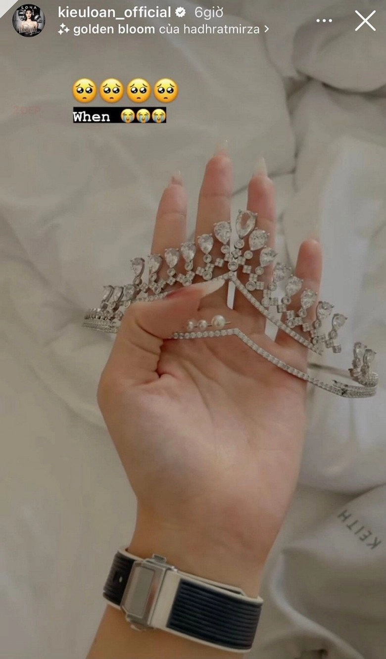 Vương miện Á hậu của cô đã bị gãy đôi ở phần đường dáng, đồng thời nhiều chi tiết đính hạt như kim cương và ngọc trai đã bị rơi rất nhiều. Nhìn hình ảnh xuống cấp của chiếc vương miện, Kiều Loan bày tỏ cảm xúc hết sức đau lòng. Nhiều khán giả e rằng, Kiều Loan khó có thể sử dụng chiếc Tiara vì vóc dáng đã có phần bị biến dạng, xuống cấp. Hình ảnh chiếc vương miện không còn nguyên vẹn cũng phần nào nói lên rằng chủ nhân của nó đã không bảo quản và nâng niu cẩn thận.
