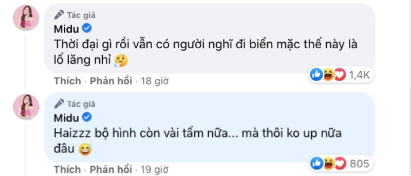 Chính chủ dù là người tài cao học rộng cũng phải ngỡ ngàng: "Thời đại gì rồi vẫn có người nghĩ đi biển mặc thế này là lố lăng nhỉ?", "Hazz bộ hình còn vài tấm nữa mà thôi không up nữa đâu!".