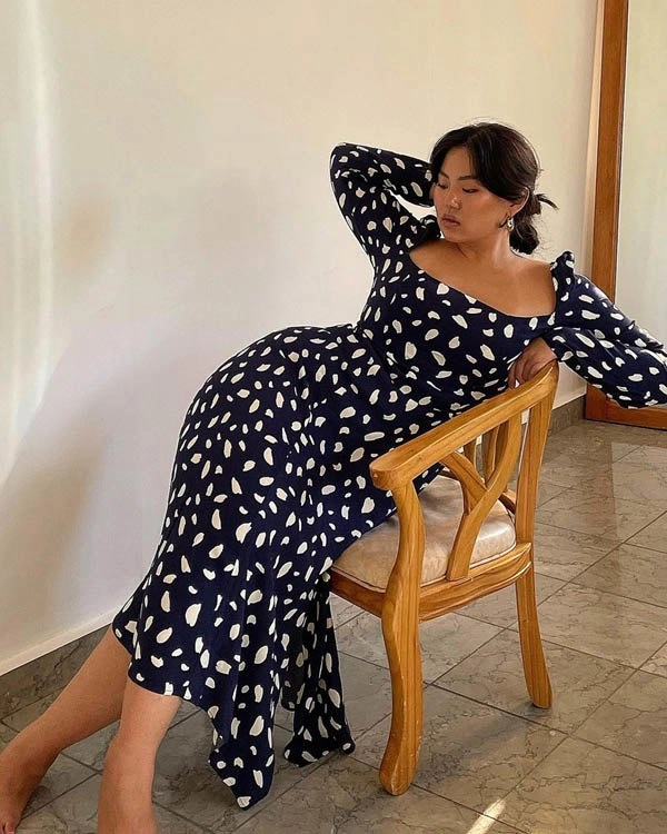 Một chút nữ tính và yêu kiều cùng đầm hoa dài tay phong cách vintage.