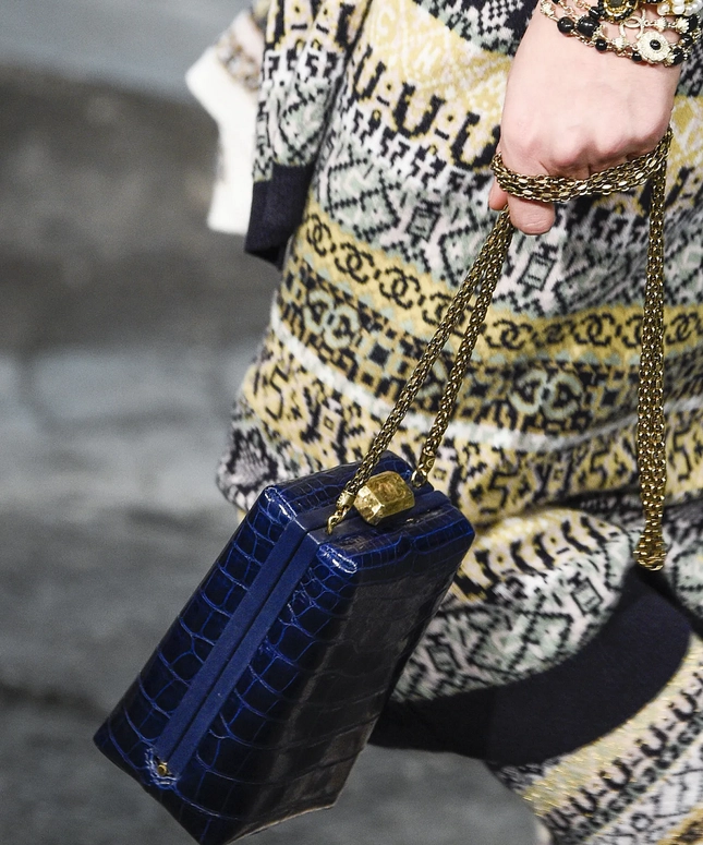 Ví dụ, một chiếc túi xách màu tím nhẹ nhàng, cổ điển được vẽ nguệch ngoạc như viết tay, mang đến một vẻ ngoài ấn tượng và riêng biệt trong bộ sưu tập của Coach. Trong khi đó, tại Versace xuất hiện một chiếc hộp đựng đồ trang điểm màu tím lilac trang trí tên thương hiệu nổi bật bằng chữ vàng.