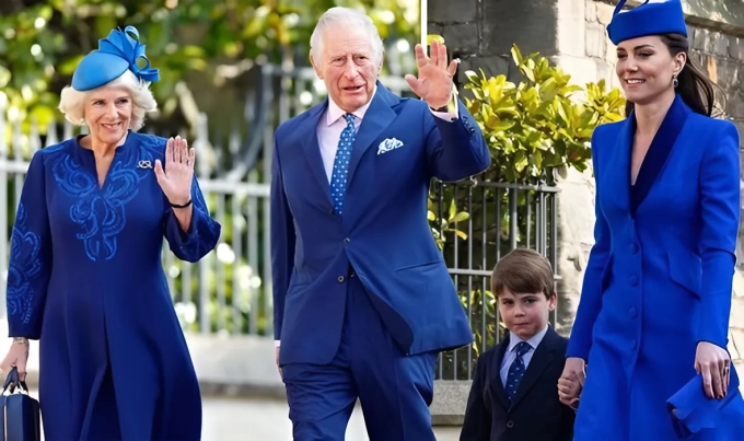 Tháng 7/2023, Kate Middleton đã tham dự lễ đăng quang của Vua Charles tại Edinburgh, Scotland. Cô mặc váy dài thiết kế riêng, diện mũ xanh đậm và đôi giày cao gót cùng màu. Tổng thể diện mạo "All Blue" vừa hài hòa vừa tràn đầy khí chất hoàng gia. Trong lễ Phục sinh hồi tháng 4/2024, Vua Charles, Hoàng hậu Camilla cùng cả gia đình hoàng gia đều mặc toàn bộ màu xanh, với từng chi tiết đều được chế tác tỉ mỉ, tinh xảo.