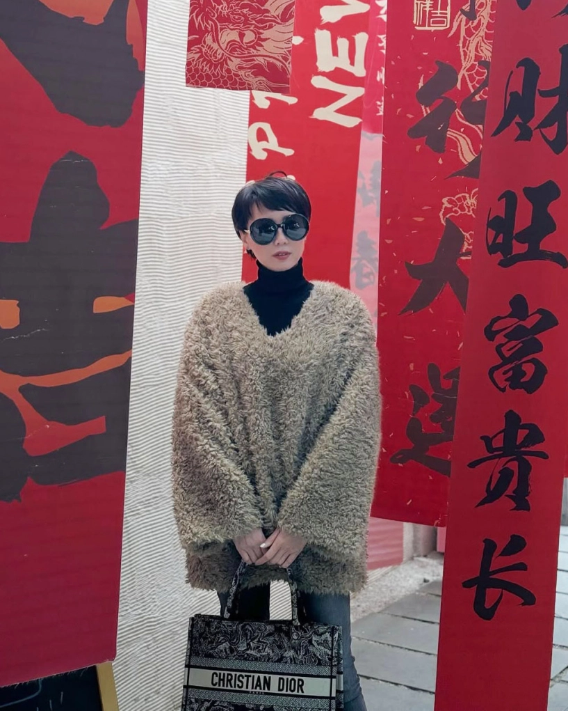 Mẹ vợ Đoàn Văn Hậu phối layer đa chất liệu để giữ ấm trong mùa lạnh và xách túi Dior Book Tote 3.350 USD (hơn 86 triệu đồng).