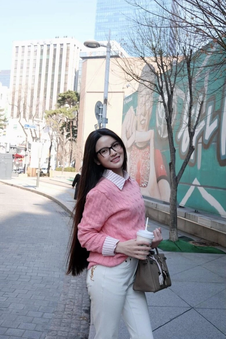 Cô cũng thường chia sẻ các hình ảnh tại Hàn Quốc, vừa tạo hình ảnh uy tín cho công việc kinh doanh, vừa khéo léo khoe những chiếc túi hiệu cô sở hữu