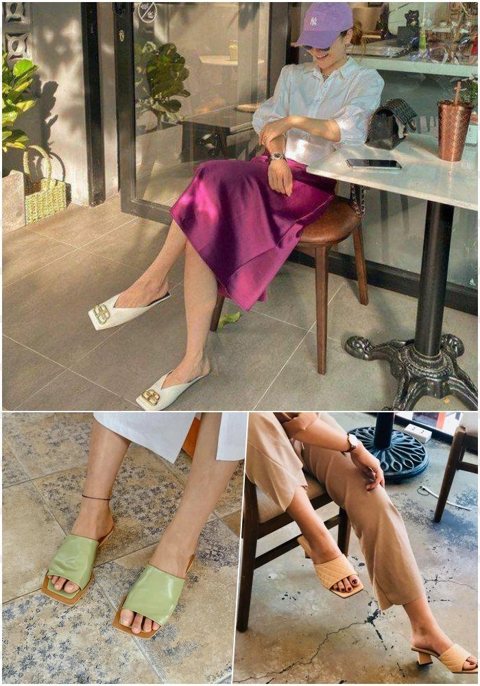 Nếu như chọn một đôi mũi vuông để đi dạo phố, đi siêu thị vừa êm chân vừa trông thật trendy, bạn nên ưu tiên những đôi dép lê hay mule/ loafer gót thấp. Lựa chọn này sẽ giúp bạn trông phóng khoáng cũng như năng động hơn khi mặc với những kiểu trang phục đơn giản ngày thường.